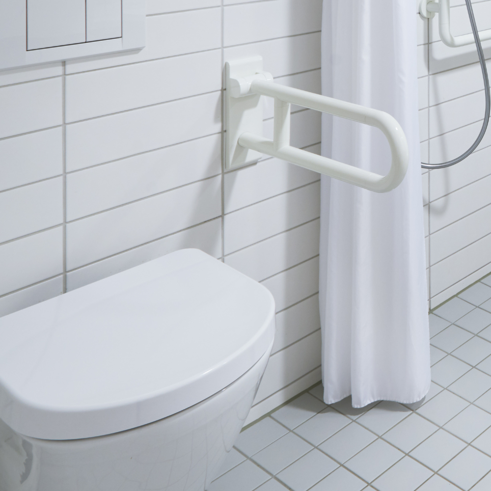 Rutschfeste Bodenbeläge/Fliesen verhindern Stürze und Haltegriffe unterstützen das Aufstehen. Ausziehbare Armaturen und unterfahrbare Waschtische verbessern die Erreichbarkeit. Wasserstop verhindert das Überlaufen von Wasser und leicht zugängliche Siphons ermöglichen das Rausholen von Wertgegenständen. Schmutzresistente und glatte Oberflächen erleichtern die Reinigung.